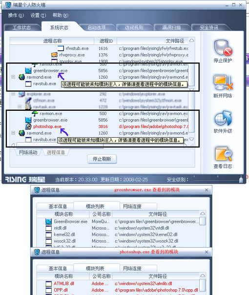 瑞星卡卡安全论坛技术交流区反病毒/反流氓软件论坛 【求助】该进程可能被未知模块注入……