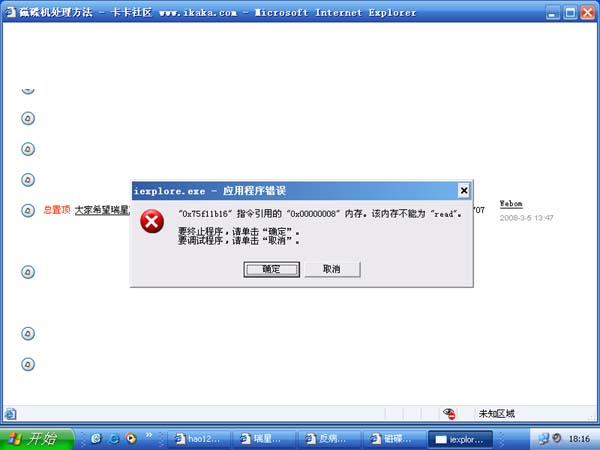 刚才想打开你给的网址,但是提示内存不能读取,再去搜索网上其他的磁碟机的名字,刚搜索就出现了同样的现象,我很担心,因为进不了安全模式,所以即使找了专杀工具也可能运行不起来,并且我的微机的光驱坏了,所以也不能用光驱启动再恢复系统了