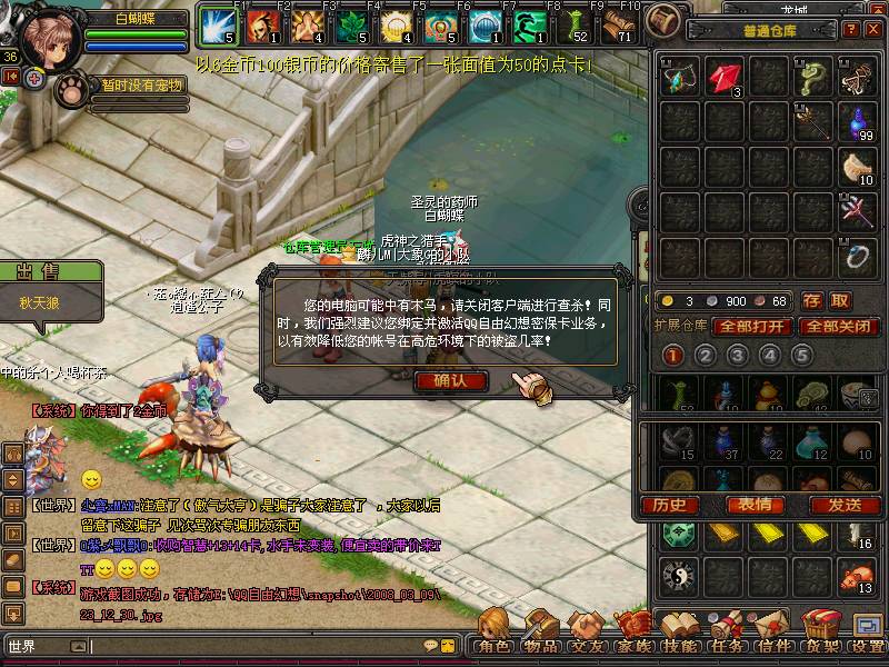 "您的电脑可能中有木马,请关闭客户端进行查杀!同时,我们强烈建议您绑定并激活QQ自由幻想密保卡业务,以有效降低您的帐户在高危环境下被盗机率"