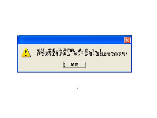 点运行就弹出一个对话框说发现正在运行的磁碟机病毒,计算机将重启。