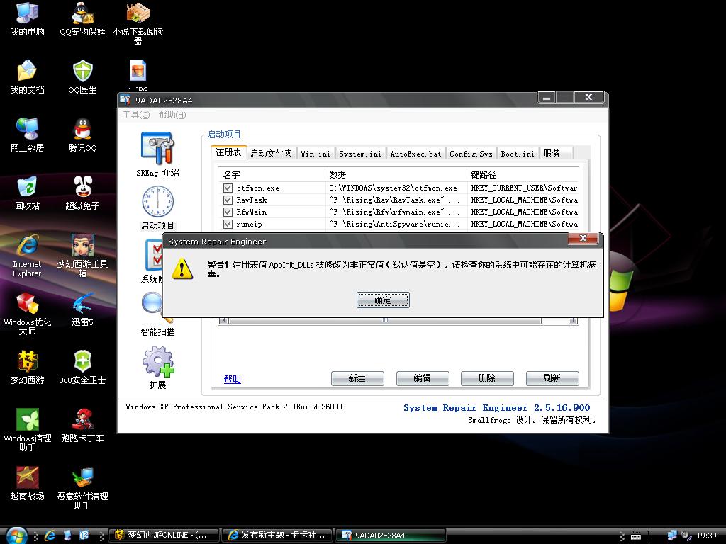 AppInit_DLLs这个默认是空的,被修改了,SRE提是我中毒了,付上日记