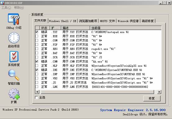 打开SREngPS.EXE,选择【启动项目】-【注册表】,将以下项删除: