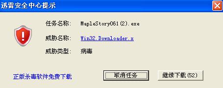 昨晚因为每次玩冒险岛防火墙都发出警告说有注册列表被注入.今天我迫于无奈只能删除冒险岛再从官方网站下载客户端.可迅雷怎么都不给我下载.我一查.才发现迅雷的扫描表示瑞星探测到了该客户端有病毒Win21.Download.x可其他的杀毒软件都没发出警告.我之后联络了其他冒险岛的玩家.他们都说没事.我只能判断瑞星误杀冒险岛了
