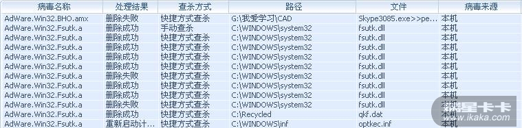 我查出来病毒名字是:AdWare.Win32.Fsutk.a