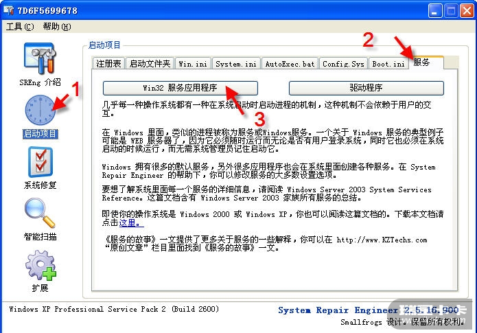 打开SREngPS.EXE,选择【启动项目】-【服务】-【Win32服务应用程序】