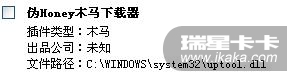插件名字为伪Honey木马下载器 怎么清理也清理不掉,用瑞星杀毒,杀不出来