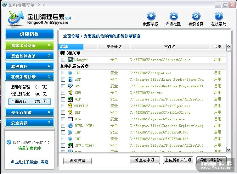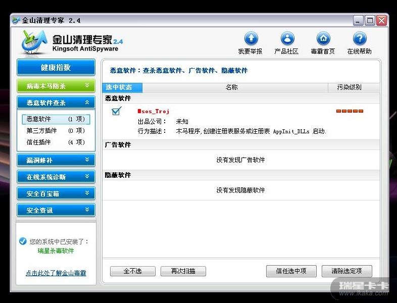 试着启动瑞星杀软全盘杀毒,但是没杀出个结果。