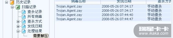 今天用瑞星发现两个病毒,老杀不了,提示要解压缩后杀毒。请问怎么处理啊