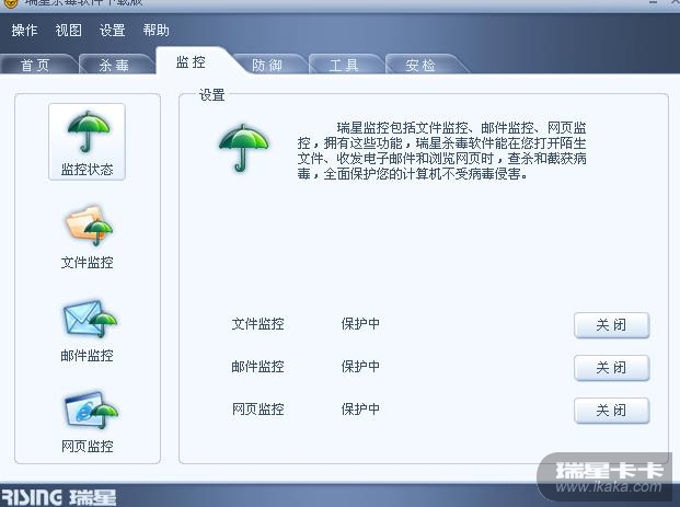 回复: 瑞星的绿伞开着但安检等级低,监控防御不符合什么意思?
