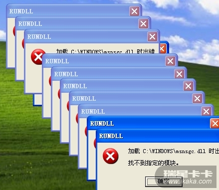 瑞星怎么杀完还是不断出现不停出现:加载C:\WINDOWS\msnsgc.dll时出错找不到指定的模块。
