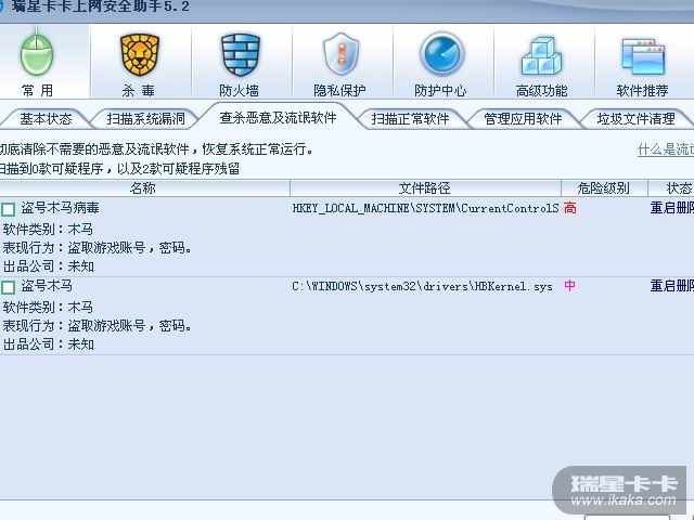 我用卡卡助手扫描出的2个病毒怎么弄的弄不掉~