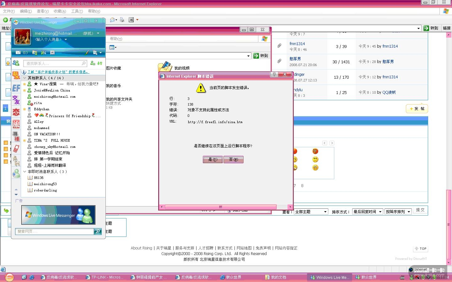 感觉弹出的那个窗口是你ie插件或脚本的错误,可能是清楚病毒后遗留下的问题。修复下ie试下