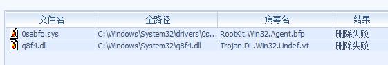 RootKit.Win32.Agent.bfp 删除失败 快捷方式查杀 C:\Windows\System32\drivers 0sabfo.sys 本机