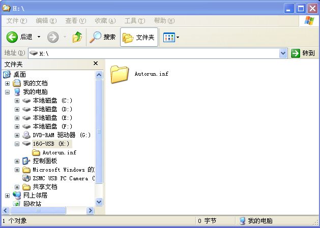 这个文件夹很奇怪,里面没有东西,是0字节的,但它还能传播,传到别的机子上。把U盘格式后,再重新插入U盘又能看到它了,一开始它是隐藏文件夹的方式出现,重新插入U盘后它就变成是普通能显示的文件夹了,但始终是显示着0字节。用过U盘的专杀工具“kill_auto.exe”,“kill_folder.exe“,“kill_meex.exe“,“瑞星杀毒软件”都没把它的根查出来。