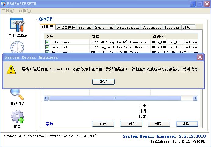 PS:如主程序SREng**.exe无法运行,导致无法扫描日志