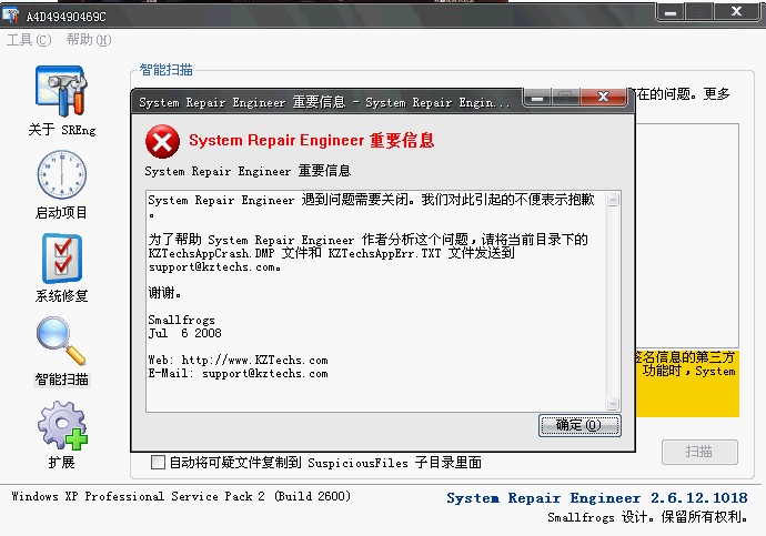 有调试按钮和显示错误信息按钮,提示我要不要发送错误报告(WINDOWS 自带)然后WINDOWS 再次弹出另外一个错误报告,可以一目了然是瑞星的错误.