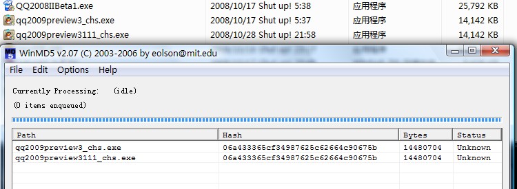 以下是两个版本的MD5值:1c9e2d457b39563b401a9eb186bc23af QQ2008IIBeta1.exe