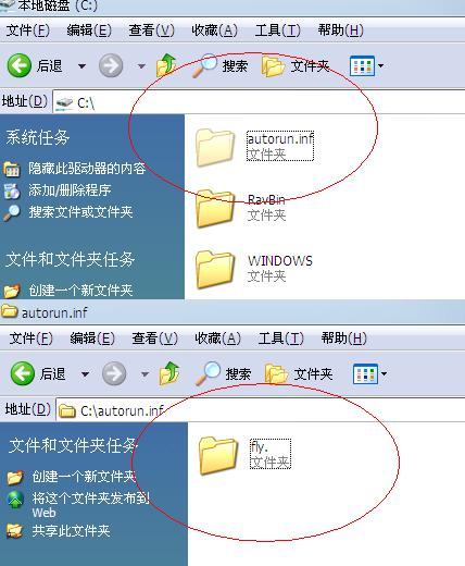 所有针对autorun.inf和fly.文件夹的操作,包括复制、删除、移动、改名、修改属性等均无效。