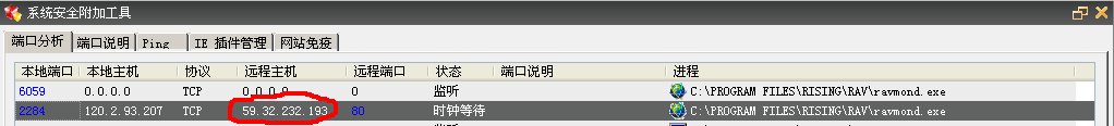 用优化大师检测到的远程主机连接,通过进程ravmond.exe.,ip查询是广东韶关的,是瑞星的程序行为吗?
