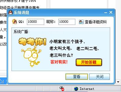 一开网页就弹出一个小窗口,冒充QQ的系统消息,要么是6位QQ号,要么是考考你,要么是设计签名,要么是空间有新回复啥的,关也关不掉,瑞星也杀不出啥,卡卡也找不出什么东西,谁来帮帮我?谢谢