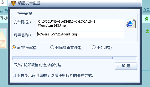 打开QQ空间后提示病毒 Adware.win32.Agent.cng。
