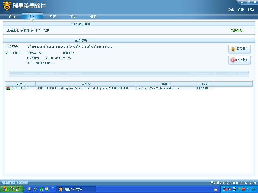 用瑞星天天杀毒,每天都是同一个病毒,每次杀毒都提示清除成功。可是第二天杀毒又有。就下图这个病毒。
