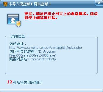 该网站上确实没有木马,但网页上有漏洞,而且这个漏洞容易被木马利用,所以瑞星提醒此网站有恶意脚本