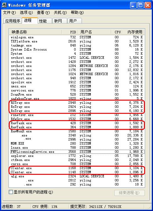 回复:我的任务管理器里出现了的瑞星进程为什么会这样?