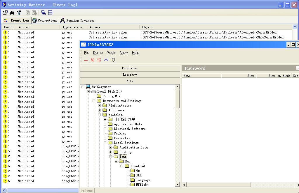 (1)病毒处于运行中.........。Temp目录下清爽的很,啥都没有。