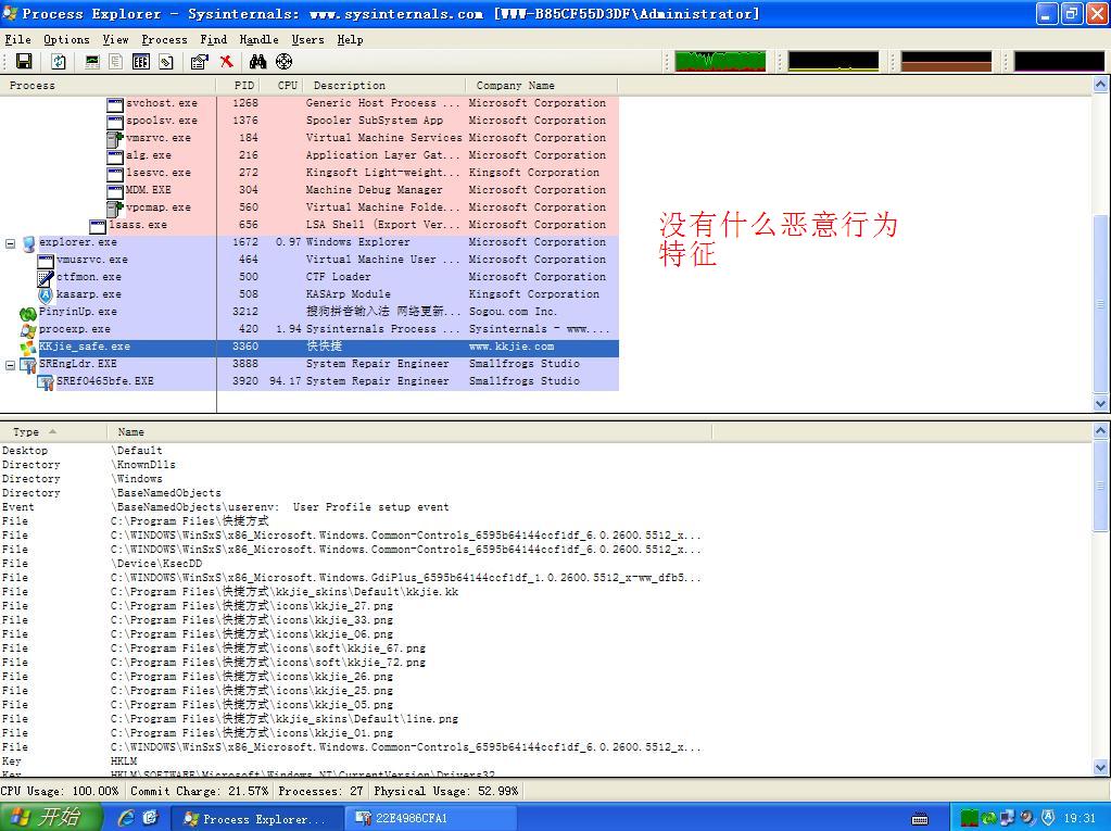 解压缩安装之后我并没有运行它,但是病毒已经从后台开始运行了,我一看不好打开任务管理器,首先是很多个名字为很多数字后缀为.txt的进程冒出来,关也关不掉,还无数次的自动打开cmd注册表,最后电脑里就凭空被装了很多流氓软件,然后系统崩溃,正在杀毒的瑞星被关,360进程也被关掉,IE主页被修改,并根本无法打开.各盘符下都出现很多个名为XXXXXXX.INI的文件.删除后还会再次自动重建.我试过更改它的名称,删除并快速创建同名文件,都不行.只要病毒检测到盘符下的文件不是它自己的就会重新创建.我看了一下里面的东西,似乎跟IE有关.我猜是他修改了IE从网上不断下载木马.最后滴的一声,我的电脑再也打不开了。