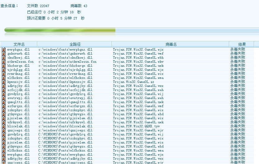 这里下载费尔木马强力清除助手,点选“抑制文件再生”删除下面文件。