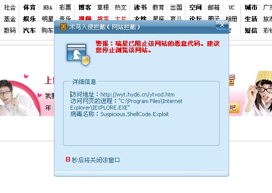 Suspicious.ShellCode.Exploit是病毒吗?无论浏览什么网站,总是弹出对话框,但是用瑞星也杀不掉。有什么好方法可以解决?