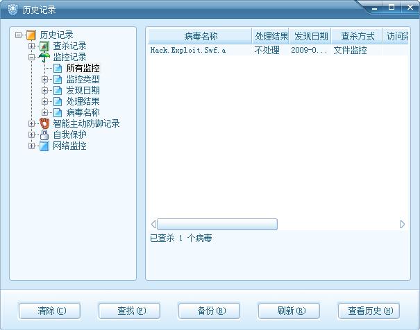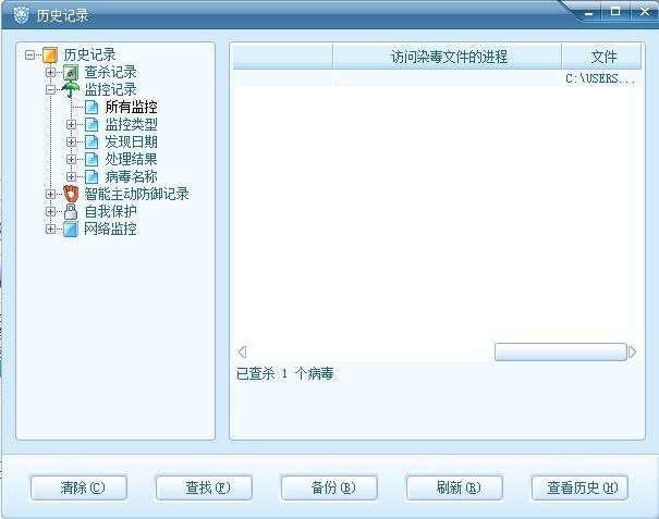 病毒名称 处理结果 发现日期 查杀方式 访问染毒文件的进程 文件