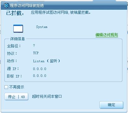 回复: 瑞星防火墙老弹出拦截一个Listen的对话框