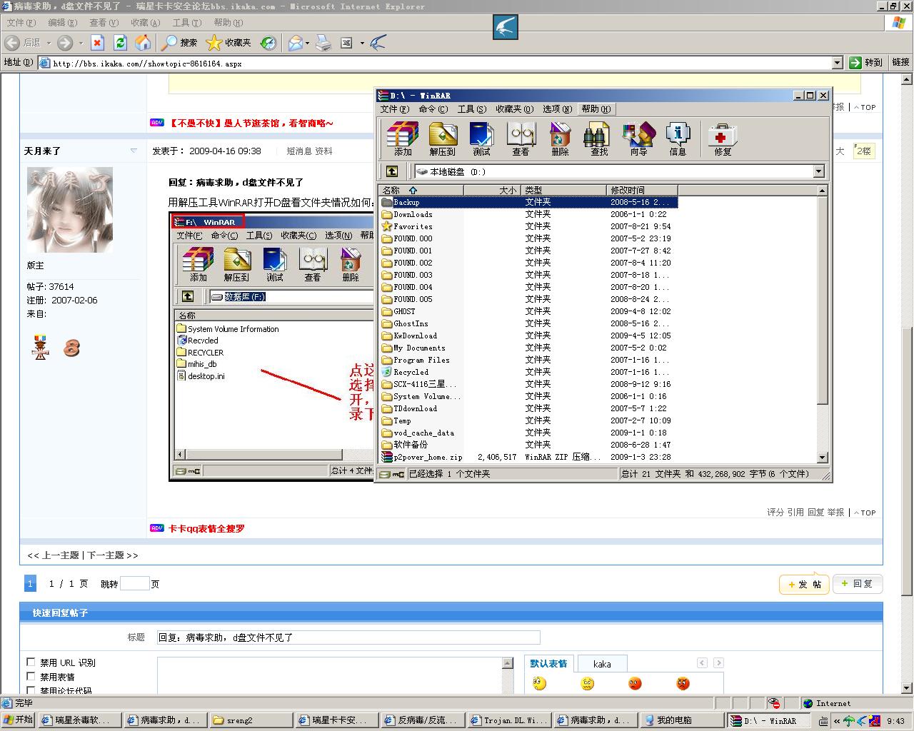 回复:病毒求助,d盘文件不见了