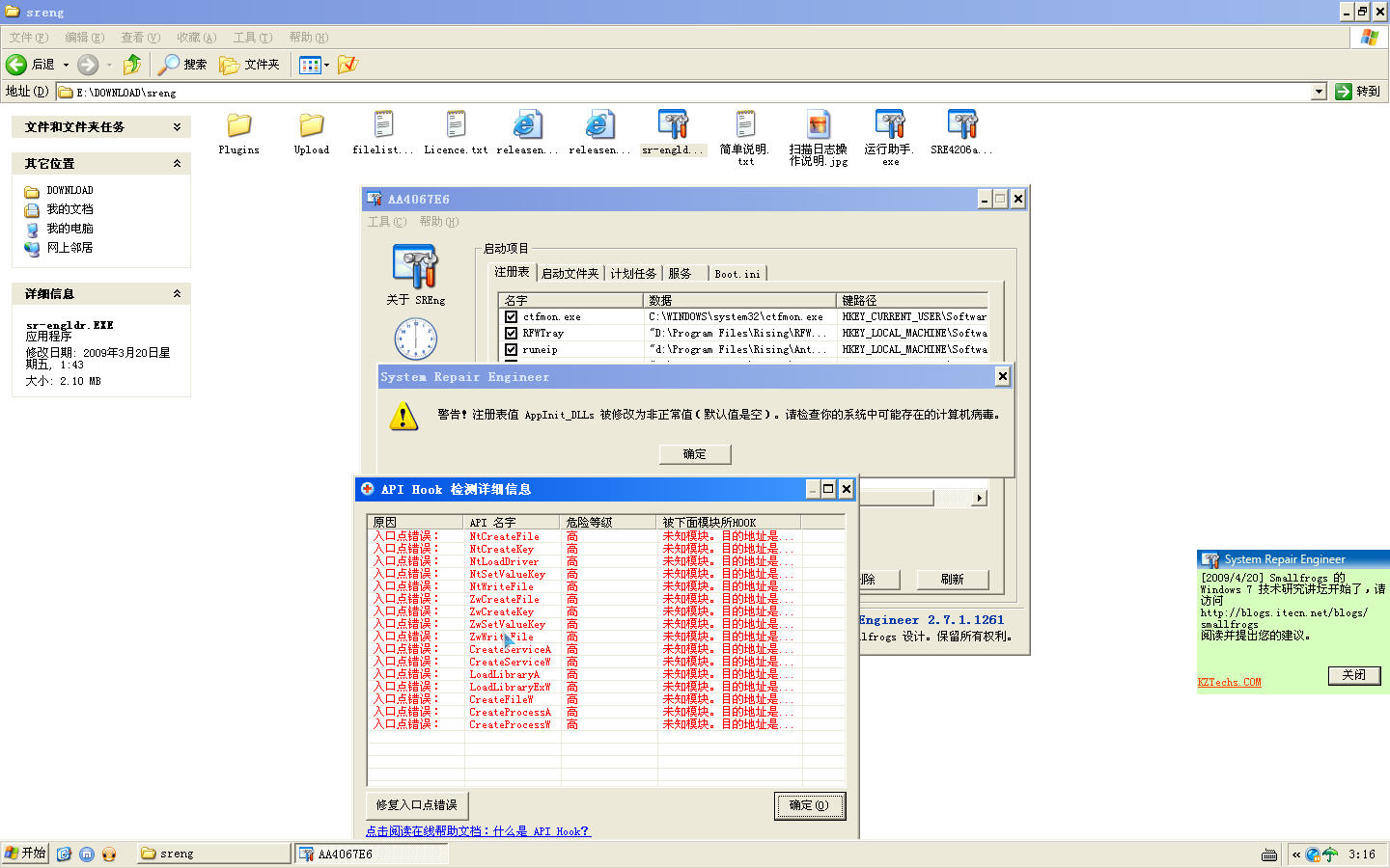 AppInit DLLs被修改为非正常值!瑞星重装应用程序错误!