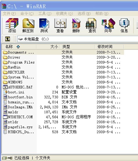 用解压工具WinRAR打开磁盘看根目录下不明文件: