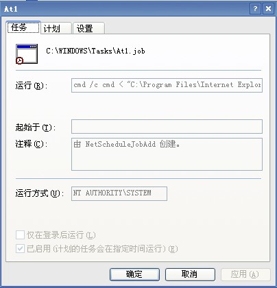 在计划任务里面使用 cmd /c<C:\windows\system32\attusb.dll 命令行来运行这个批处理。