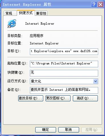 属性中目标是"C:\Program Files\Internet Explorer\iexplore.exe"
