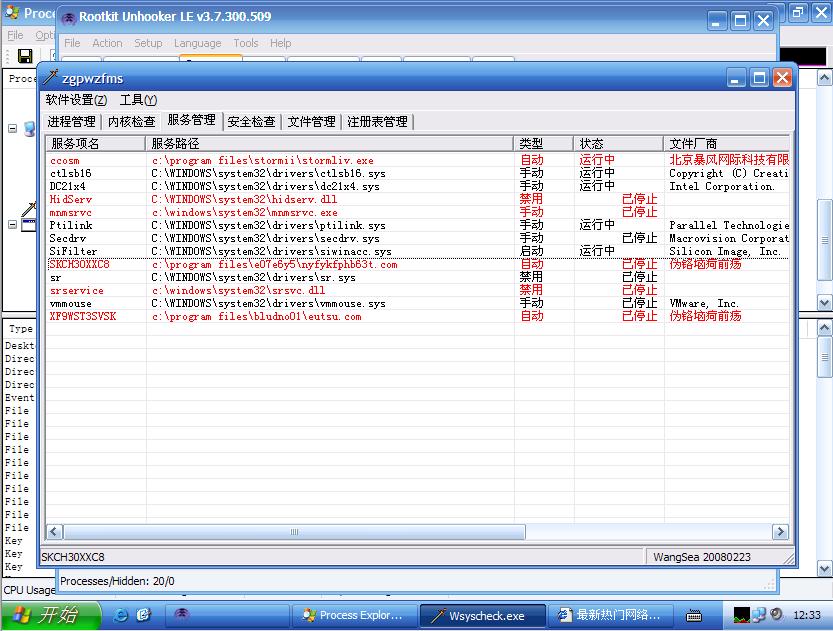 瑞星全盘查杀,和一些流行木马查杀,我都用过了,没有用,查不出来。。。。