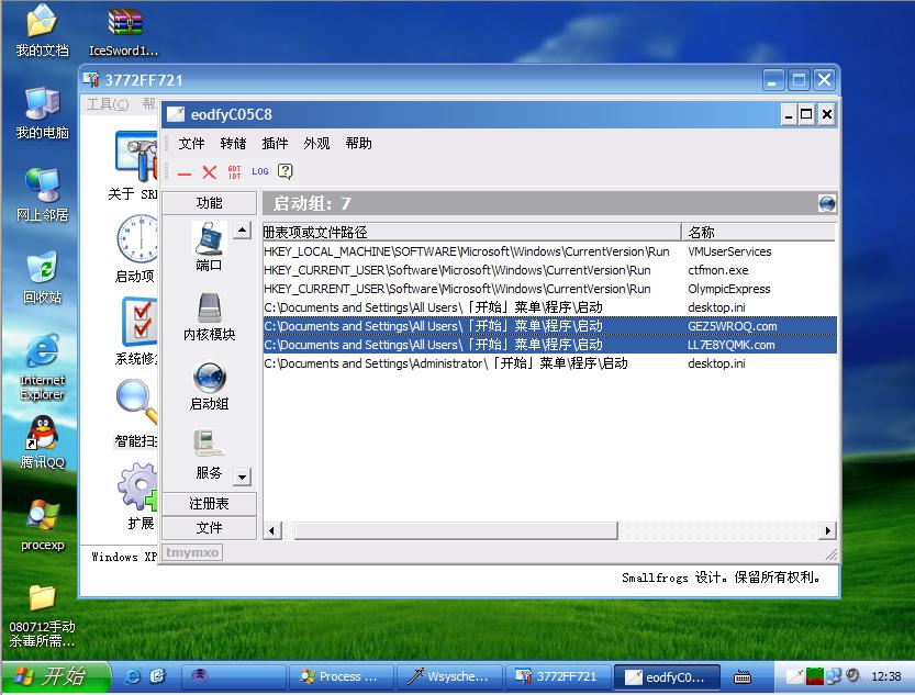 启动一些敏感程序时,例如QQ,那么,QQ的主程序也会被复制为几十个文件同时访问网络,性质 同上。