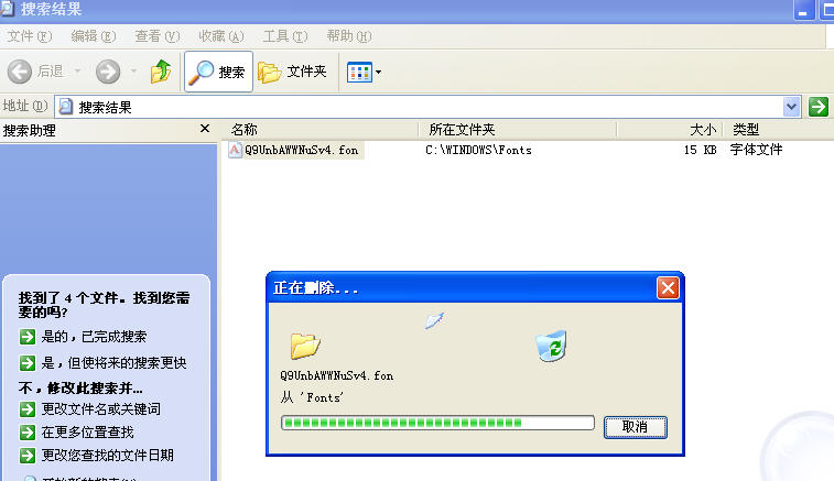 2、再分别搜病毒文件.fon、.ttf、.sys、.dat等,依样画葫芦,仿前面图1-图7处理。