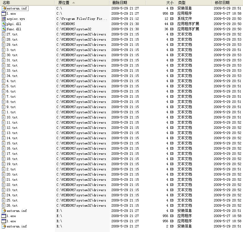 近期流行的这类木马群都比较变态。有驱动保护、病毒文件多,插入进程的病毒模块多,在各硬盘分区根目录以及移动存贮介质根目录下创建autorun.inf及配套的病毒.exe。