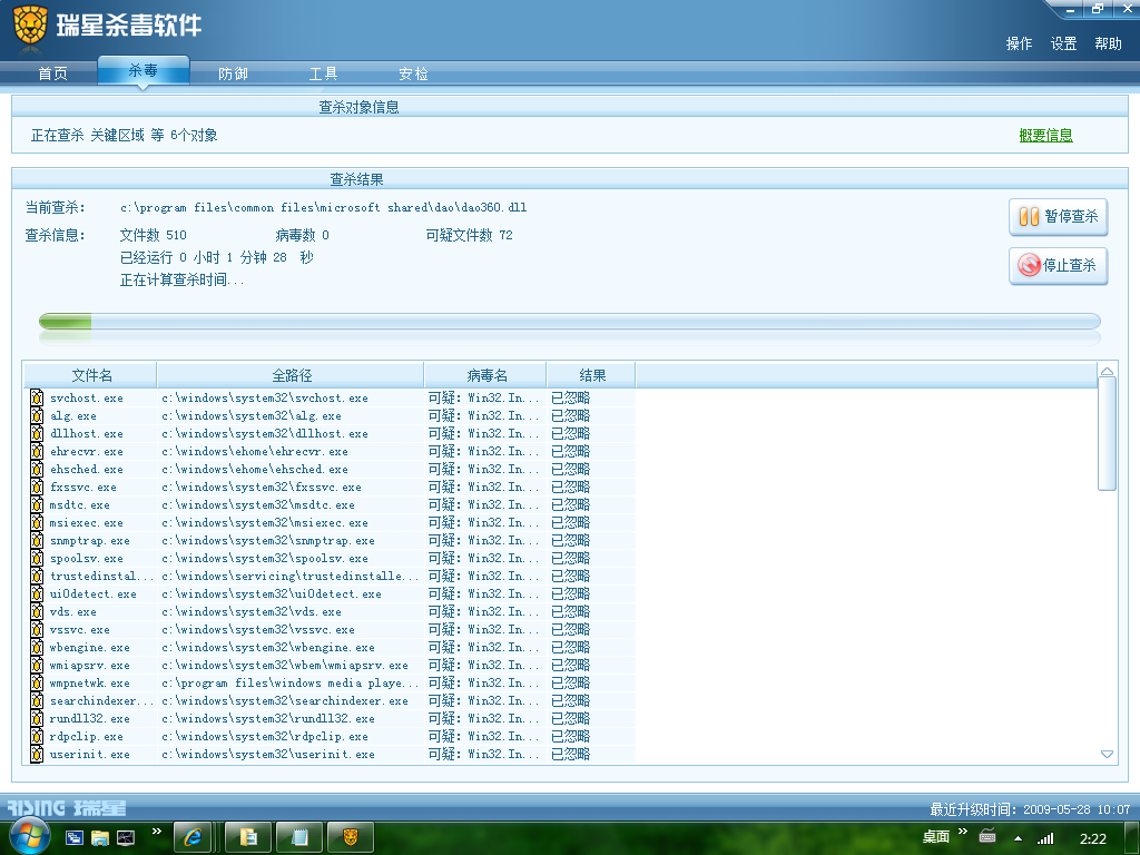 [求助] 在 Windows 7 上用正版瑞星杀毒软件进行全盘杀毒