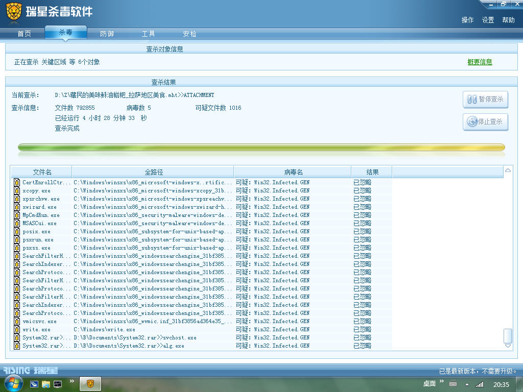 这么多的“Win32.Infected.GEN”可疑病毒,不知问题出在系统还是瑞星
