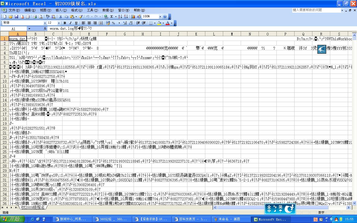 在打开的每个文档最前面有:worm.dat.log字样