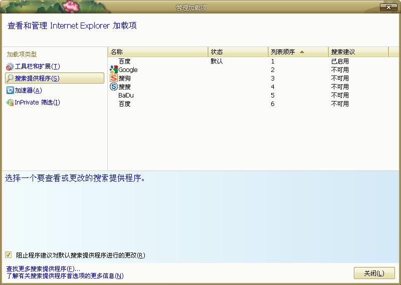 IE搜索栏有三个百度搜索,两个是冒充的