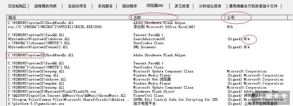 如图,一般来说看名称和公司,公司是(N/A)的一般要多注意,还要看看路径,路径在%systemroot%/system32目录下的文件..