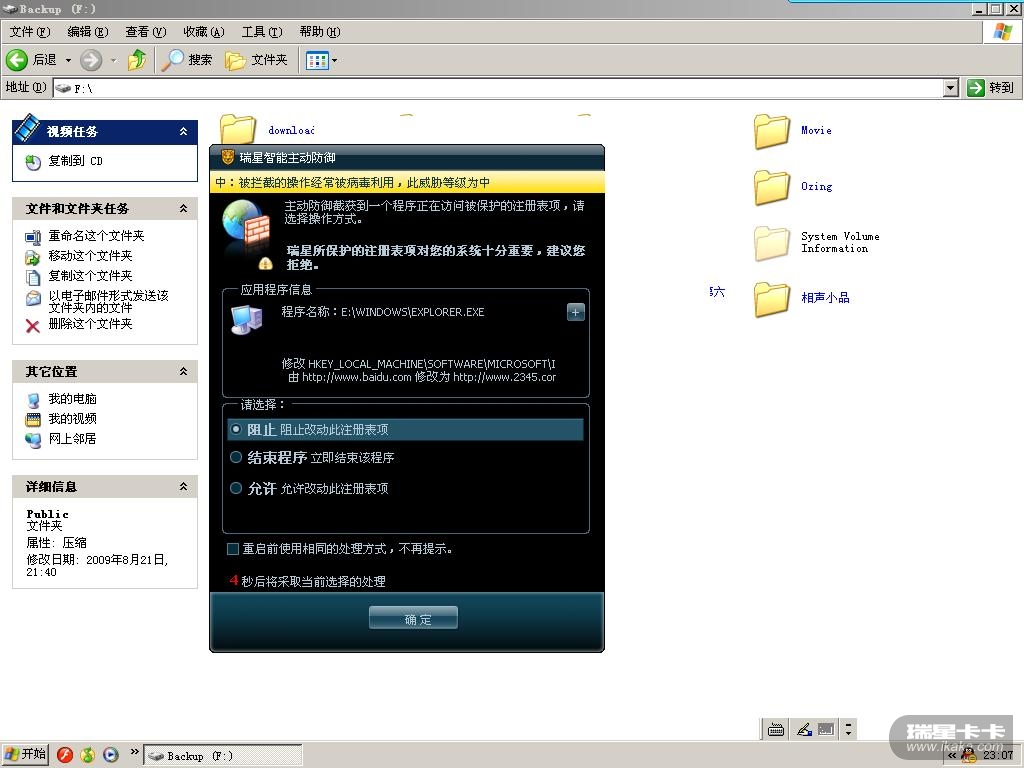 用瑞星杀毒杀不出,启动项、注册表等都正常