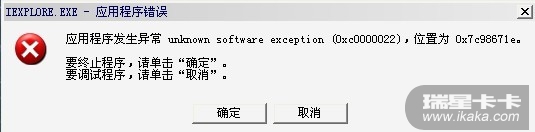 sonftware exception(0xc000008),位置为0x7c98671e.